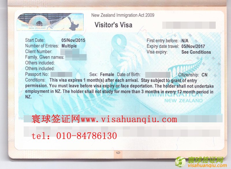 簽證類別:新西蘭旅游簽證