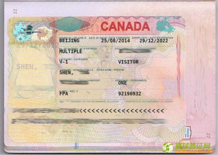 簽證類別:加拿大十年多次旅游簽證