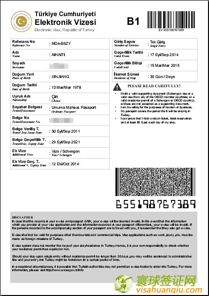 新疆,玉素浦母女土耳其旅游簽證半年多次簽證頁: