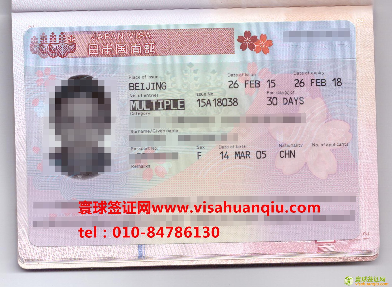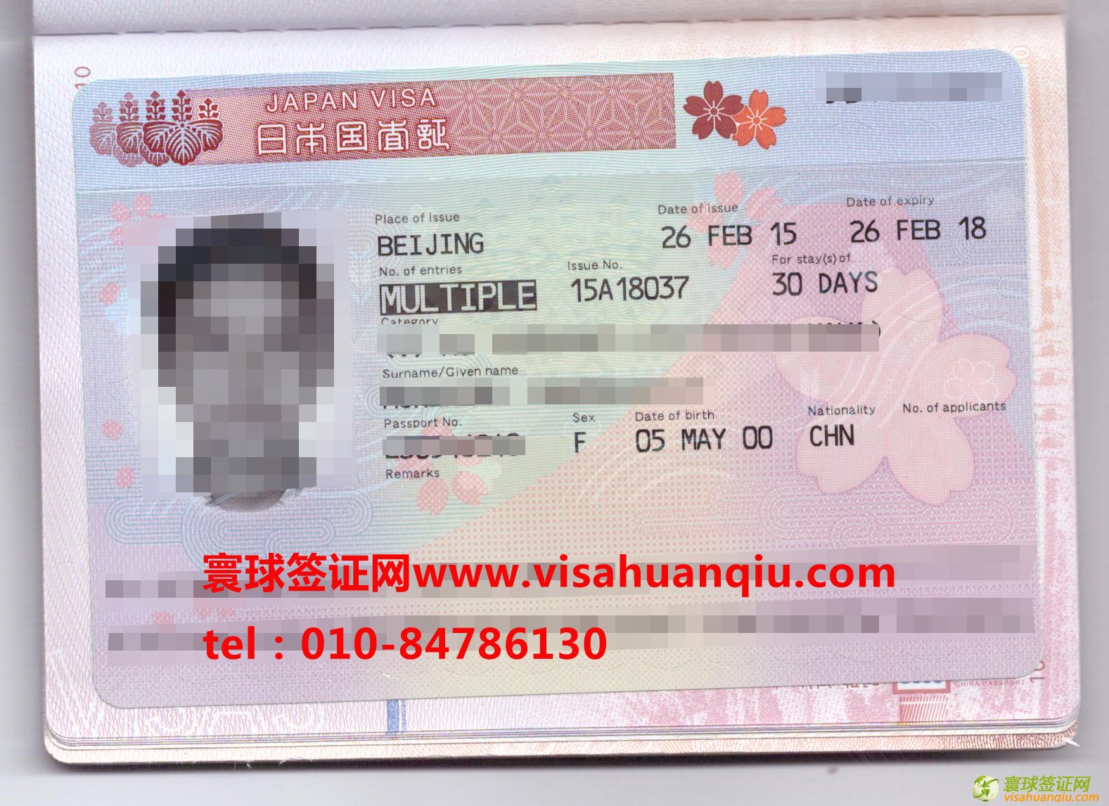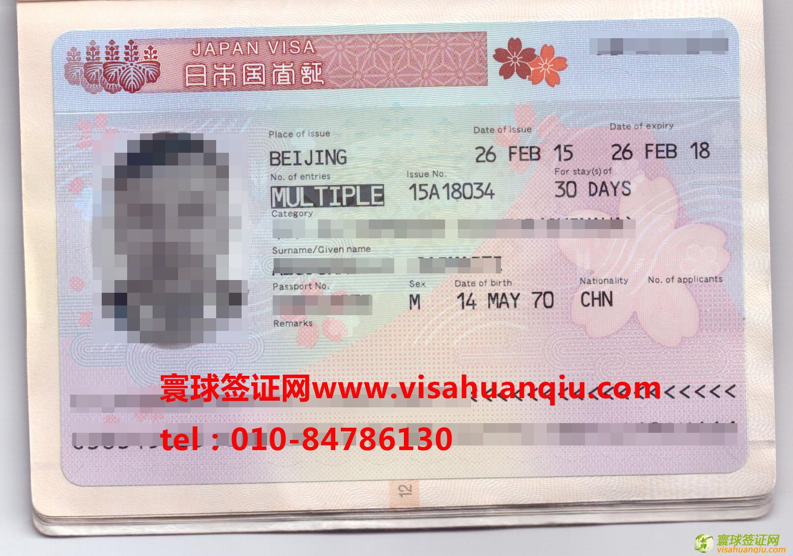 簽證類別:日本三年多次旅游簽證
