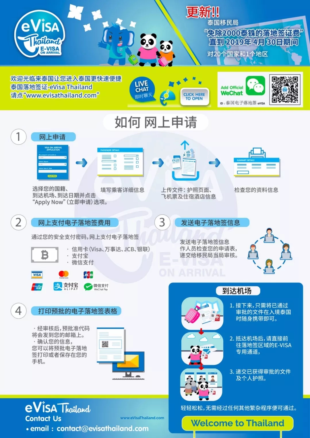 網(wǎng)上支付電子落地簽費用:支持信用卡(Visa、萬事達(dá)、JCB、銀聯(lián))、支付寶、微信支付;
