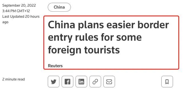 今天,眾多國(guó)外媒體報(bào)道說(shuō),有跡象顯示中國(guó)的入境政策正在松動(dòng)。稱此舉“旨在使一些外國(guó)人更容易進(jìn)入中國(guó),參觀中國(guó)邊境的旅游景點(diǎn)”。