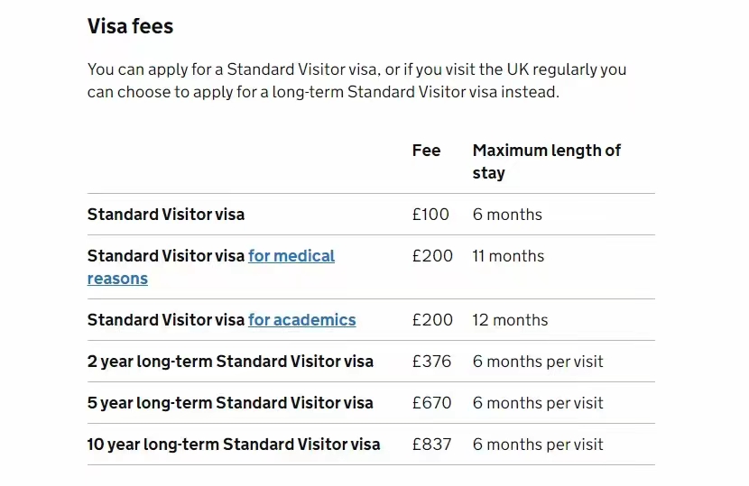 和申根國(guó)家簽證不同,英國(guó)旅游簽證有效期是固定的,停留天數(shù)也是相對(duì)固定的,從2016年1月起,來(lái)自中國(guó)的游客可以享受有效期為2年的多次入境英國(guó)訪客簽證,停留期是180天,其實(shí)相當(dāng)于繳納的是半年的簽證費(fèi),但簽證一般會(huì)給2年多次,也相當(dāng)于是一種福利,目前英國(guó)可以申請(qǐng)的旅游簽證時(shí)間從2年到10年不等,不同的申請(qǐng)年限,也就意味著需要繳納不同的簽證費(fèi)用
