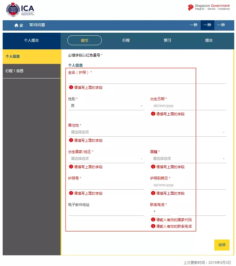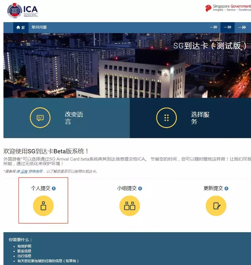 登陸https://eservices.ica.gov.sg/sgarrivalcard
