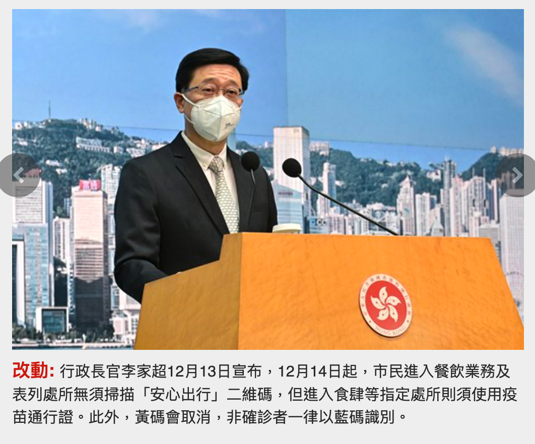 自明日起,香港市民進(jìn)入公共場(chǎng)所無須再掃描出示“安心出行”二維碼,但“疫苗通行證”的功能仍然保留,市民進(jìn)入部分指定處所例如餐廳食肆,仍需要查驗(yàn)“疫苗通行證”。