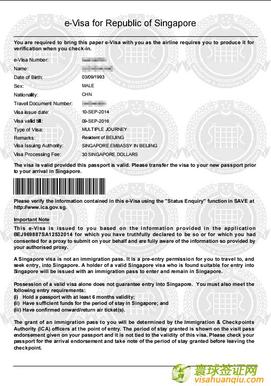 簽證類別:新加坡游簽證