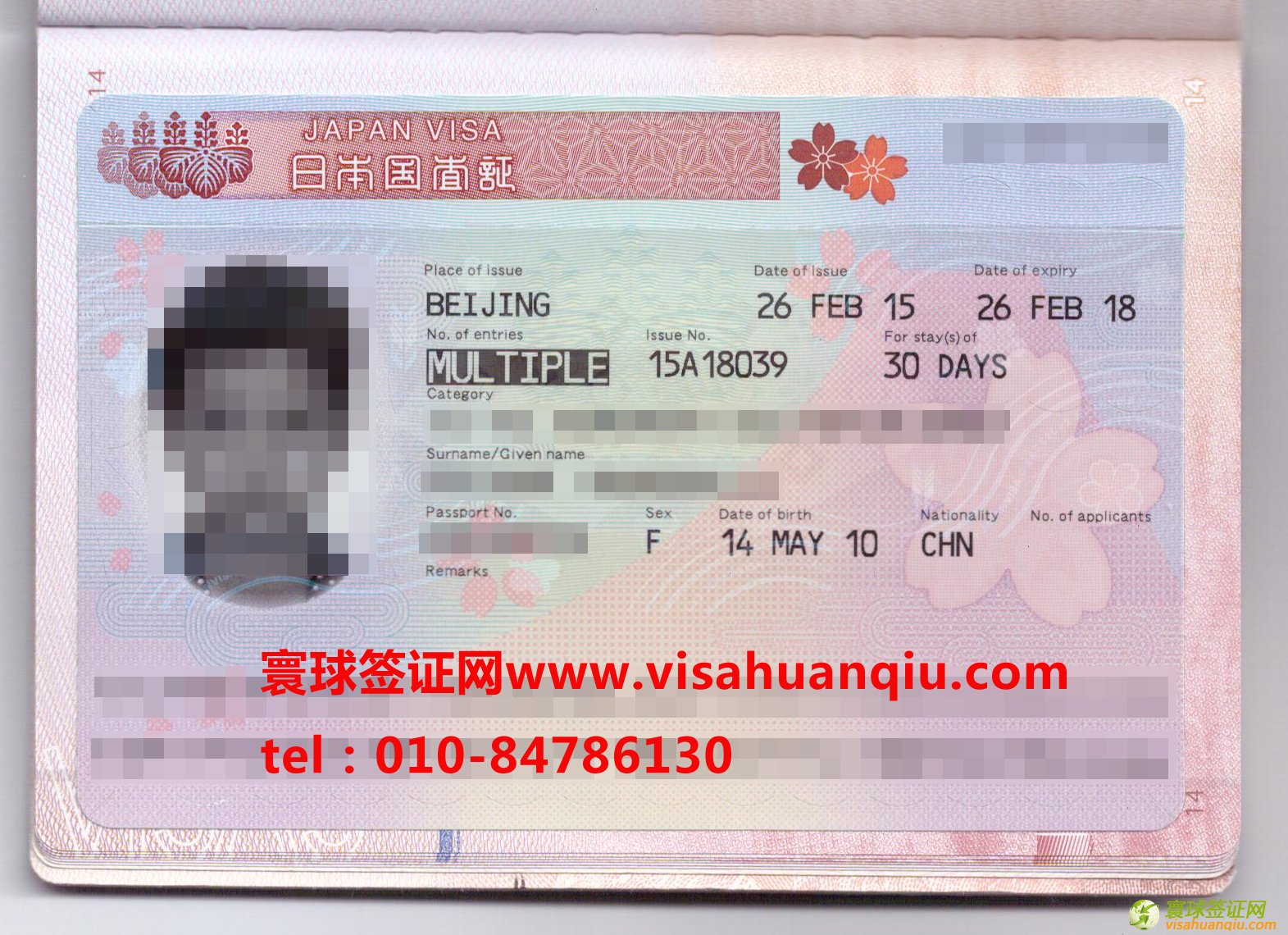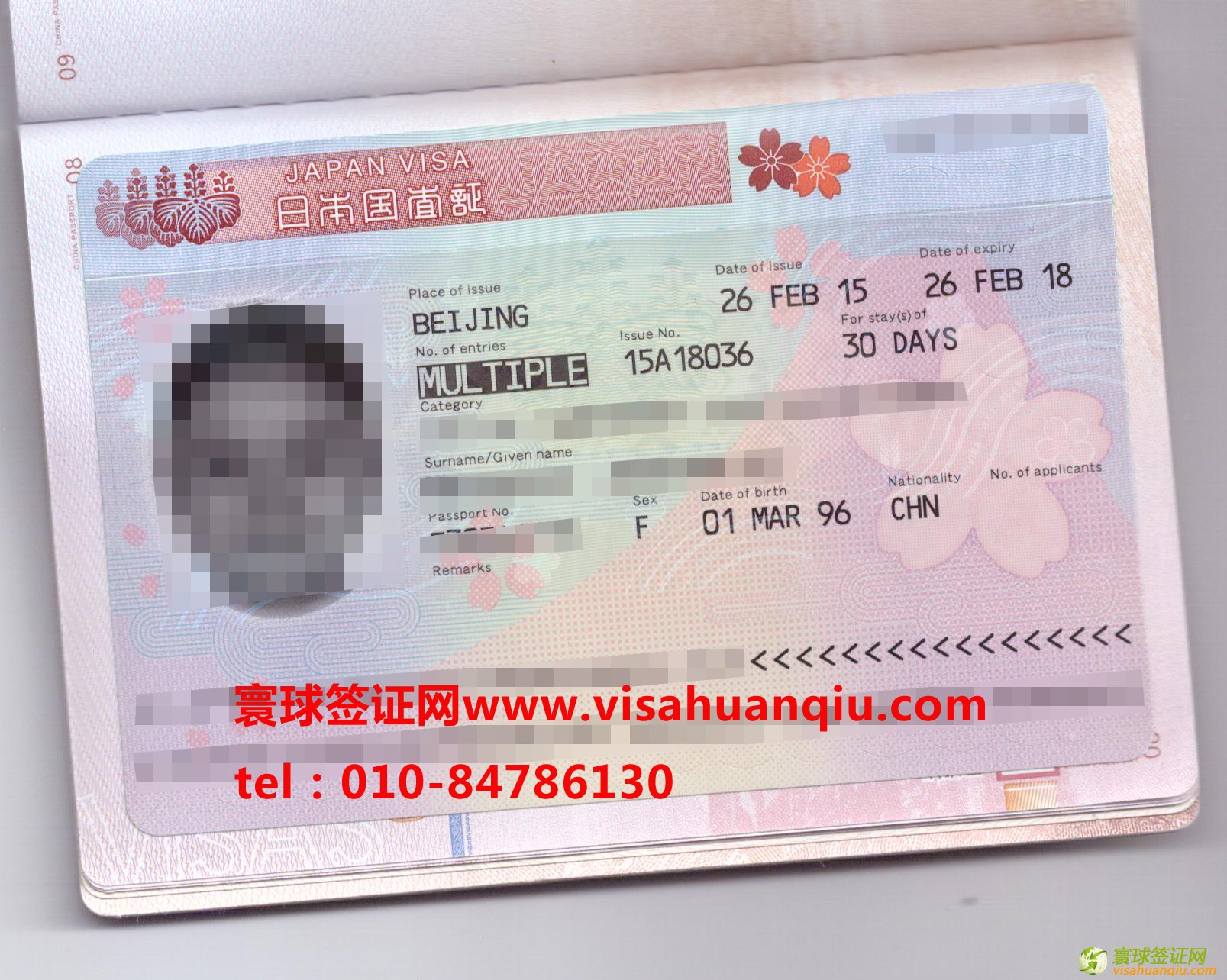 簽證類別:日本三年多次旅游簽證