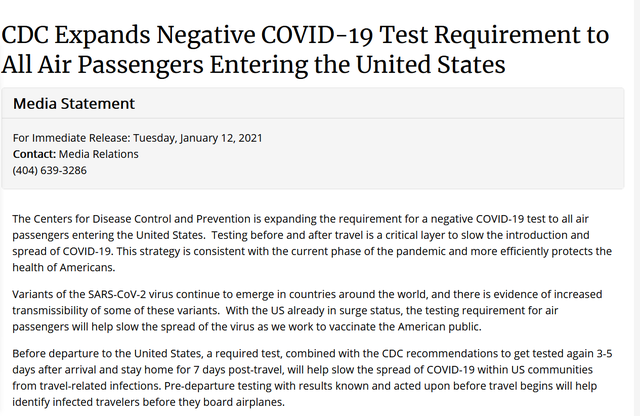 根據(jù)美國(guó)疾控中心網(wǎng)站12日公布的最新要求,所有國(guó)際旅客在乘飛機(jī)入境美國(guó)之前需要出具新冠檢測(cè)陰性證明,并在抵達(dá)美國(guó)后居家隔離7天。
