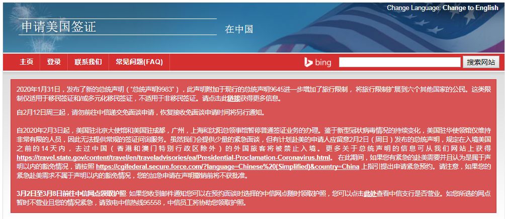 受疫情影響,美國駐華使館和總領(lǐng)事館2月初先是暫停簽證業(yè)務(wù)辦理,在宣布停辦半個(gè)多月后才恢復(fù)預(yù)約,不過這還是讓不少人舒了一口氣,畢竟可能是局勢(shì)逐漸明朗的一個(gè)信號(hào)。