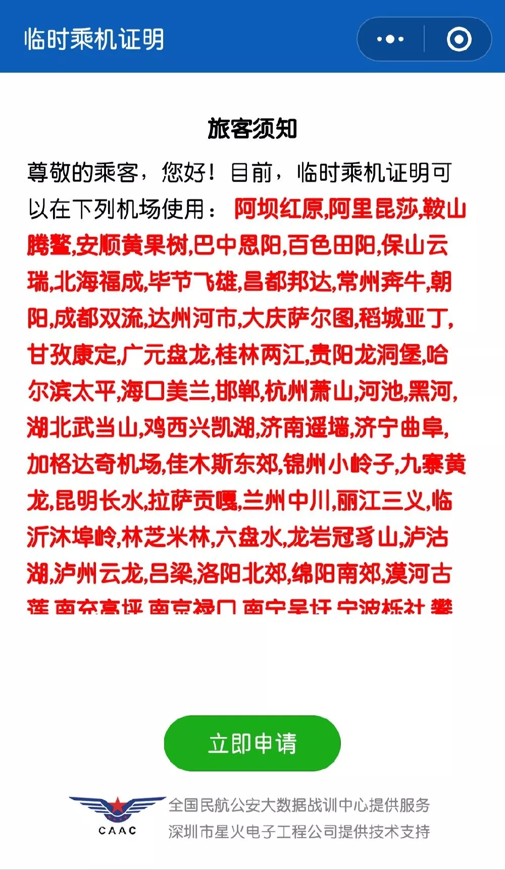 民航臨時(shí)乘機(jī)證明系統(tǒng)啟用