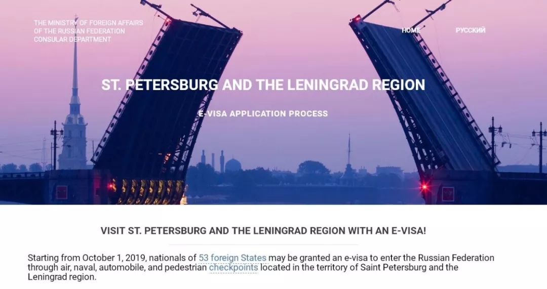 2019年10月1日起,持普通護(hù)照或公務(wù)普通護(hù)照的中國公民可登陸俄羅斯外交部網(wǎng)站免費(fèi)申請赴圣彼得堡和列寧格勒州的電子簽證。