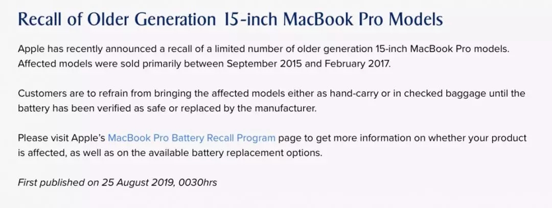 8月26日 ,新加坡航空在官網(wǎng)發(fā)布公告,禁止隨身攜帶或托運(yùn)部分蘋果電腦上飛機(jī)!