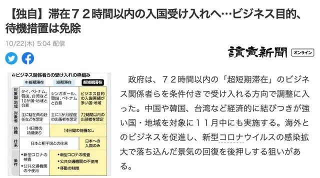 日本政府一位相關(guān)人士表示,“72小時在大多數(shù)情況下足以完成商務(wù)旅行和談判。希望在預(yù)防感染的同時盡快回歸日常生活。”